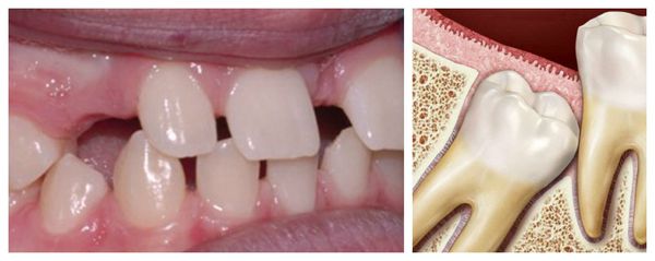 Zmniejszona liczba zębów prowadzi do przesunięcia linii środkowej uśmiechu, zwężenia i skrócenia łuków zębowych oraz zaburzenia zgryzu. Między zębami mogą pojawiać się przerwy: